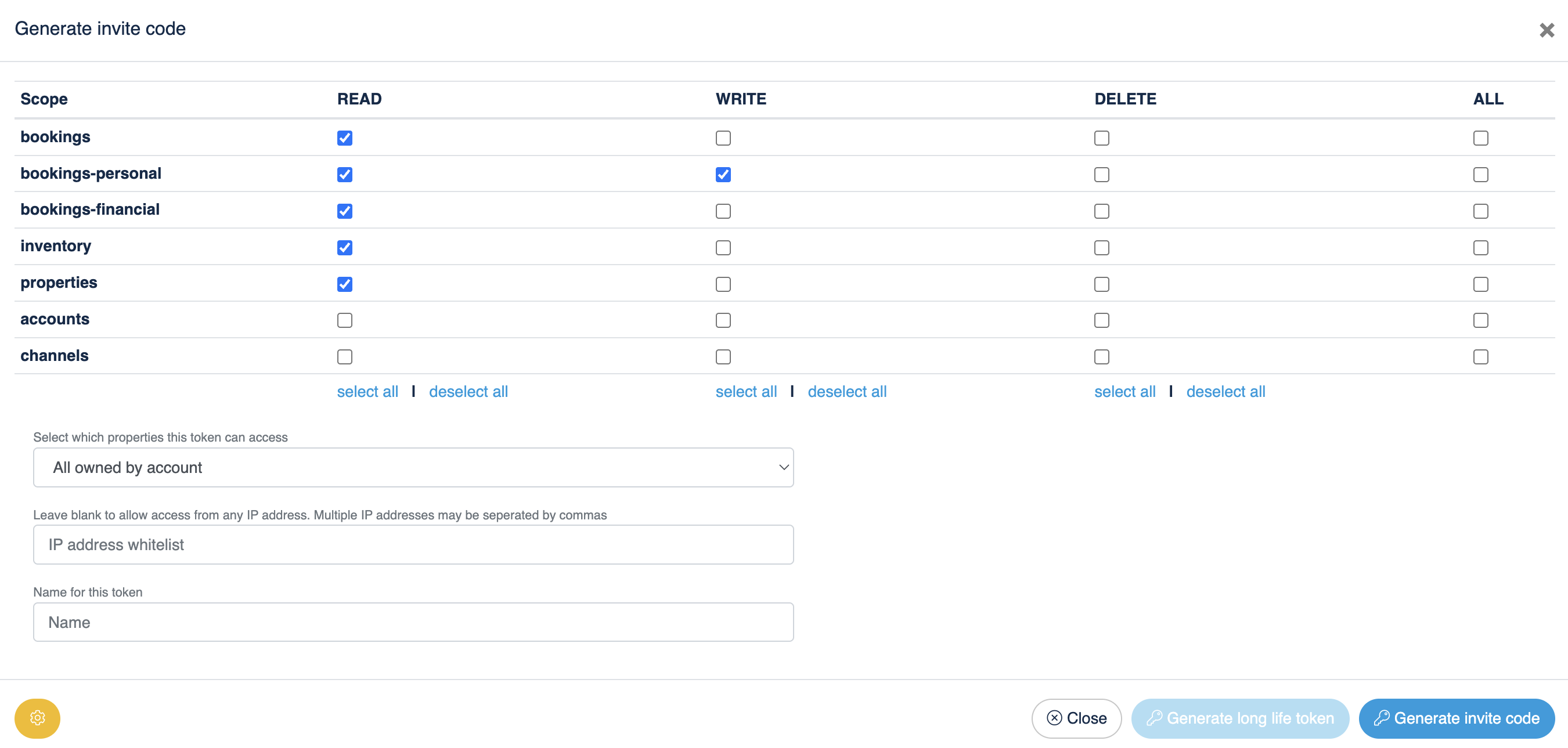 - Click Generate invite code. Copy the code and keep it private; it authorizes PingTeo to access your Beds24 data.
